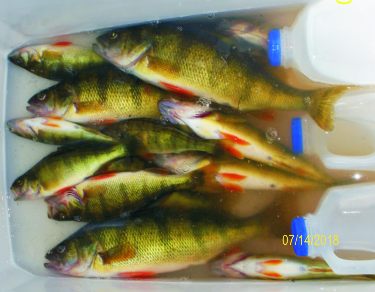 Fishing Perch out of Park II... 10' of water...Catching a limit of Perch in 2 hours... Biggest 13 1/2" and a 13 1/4"... Went to Oconto Shoal for a couple of hours, Catching 4 Walleyes (18" and 22")… (2 too small)... Missed a Walleye at the back of the Boat, and lost 2 others... Beautiful day... 0' to 1' waves and HOT ...fishing by 7: 30 am, quite at 3:00 pm....
