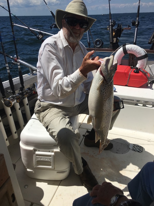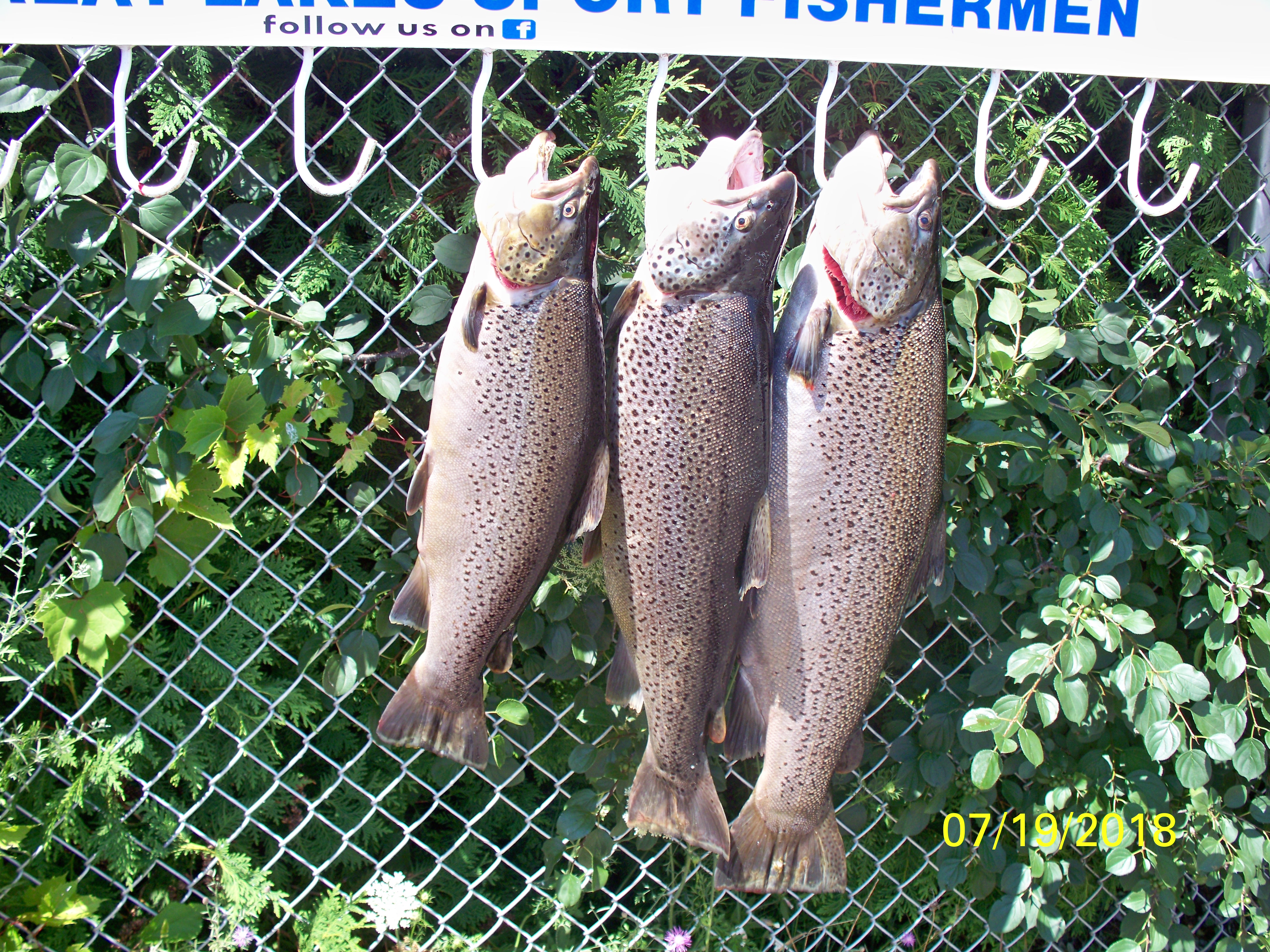 Fishing out of Marinette - Menominee with Roger Miller, Brian Belonger and Bob Hobbs... Catching a 16 1/2 lb. 14 1/2 lb. and 10 lb. Browns... Beautiful day... 1' to 2' waves... picking up towards noon... and breezy ...fishing by 6: 30 am, quite at 12:30 pm....
