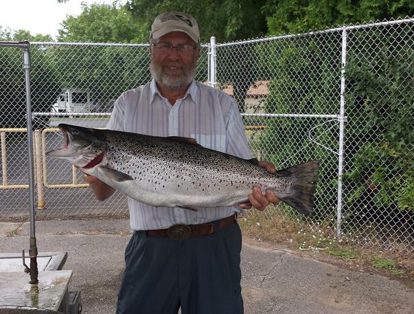 ...13 lb. Brown Trout, was caught by Brian Belonger, fishing with Roger Miller and Joe Anderson. ...fishing "Trout Bar" ...We caught 4 Browns and a Sheepshead were caught, missing a couple of other fish. 80 degrees and Cloudy, Wind was out of N/E ...about 1' to 3' Waves ...calming in late morning...